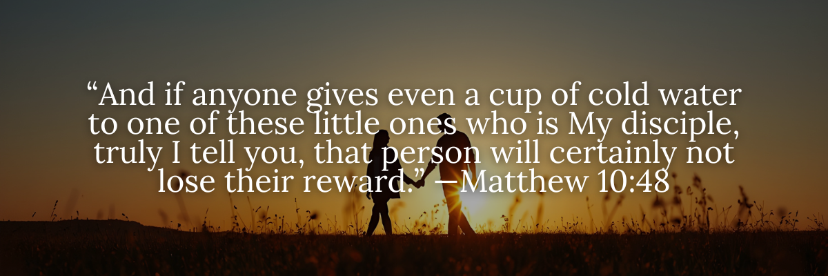 Matthew 10:48 “And if anyone gives even a cup of cold water to one of these little ones who is My disciple, truly I tell you, that person will certainly not lose their reward.”