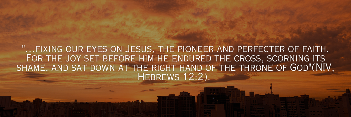 "…fixing our eyes on Jesus, the pioneer and perfecter of faith. For the joy set before him he endured the cross, scorning its shame, and sat down at the right hand of the throne of God"(NIV, Hebrews 12:2).