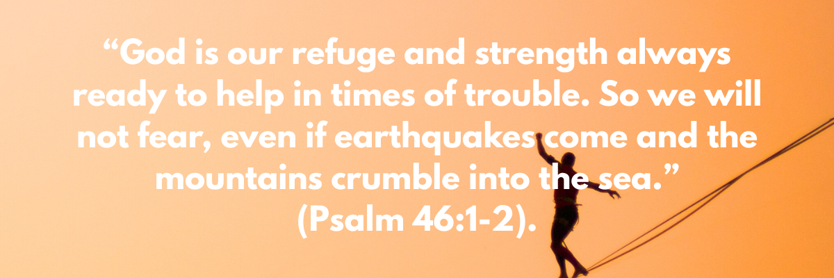 “God is our refuge and strength always ready to help in times of trouble. So we will not fear, even if earthquakes come and the mountains crumble into the sea.”