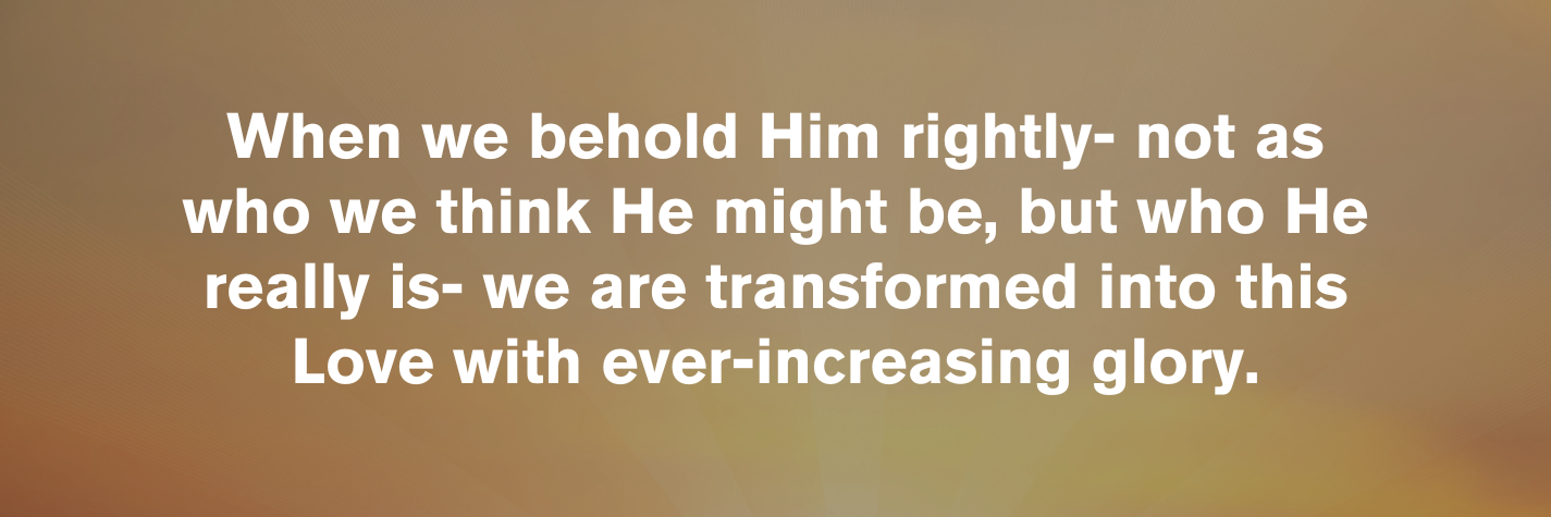 It matters how we view God. God is so many wonderful things, but 1 John 4 says specifically “God is Love. Whoever lives in love lives in God, and God in them.” He doesn’t just love, He IS love. And when we behold Him rightly- not as who we think He might be, but who He is- we are transformed into this Love with ever-increasing glory. Love will lead you to repentance, love will make you want to do what He says. (John 14:15) His love changes everything!