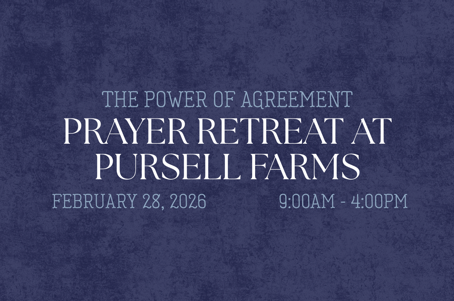 Register today and join us in at Pursell Farms on February 28th for The Power of Agreement Prayer Retreat.